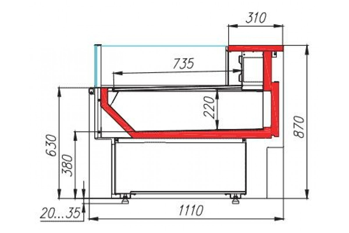 Витрина холодильная с выносным агрегатом Carboma GC110 SM 2,0-1-1(ВХС-2,0 Carboma GC110) (без боковин 1005 венге)
