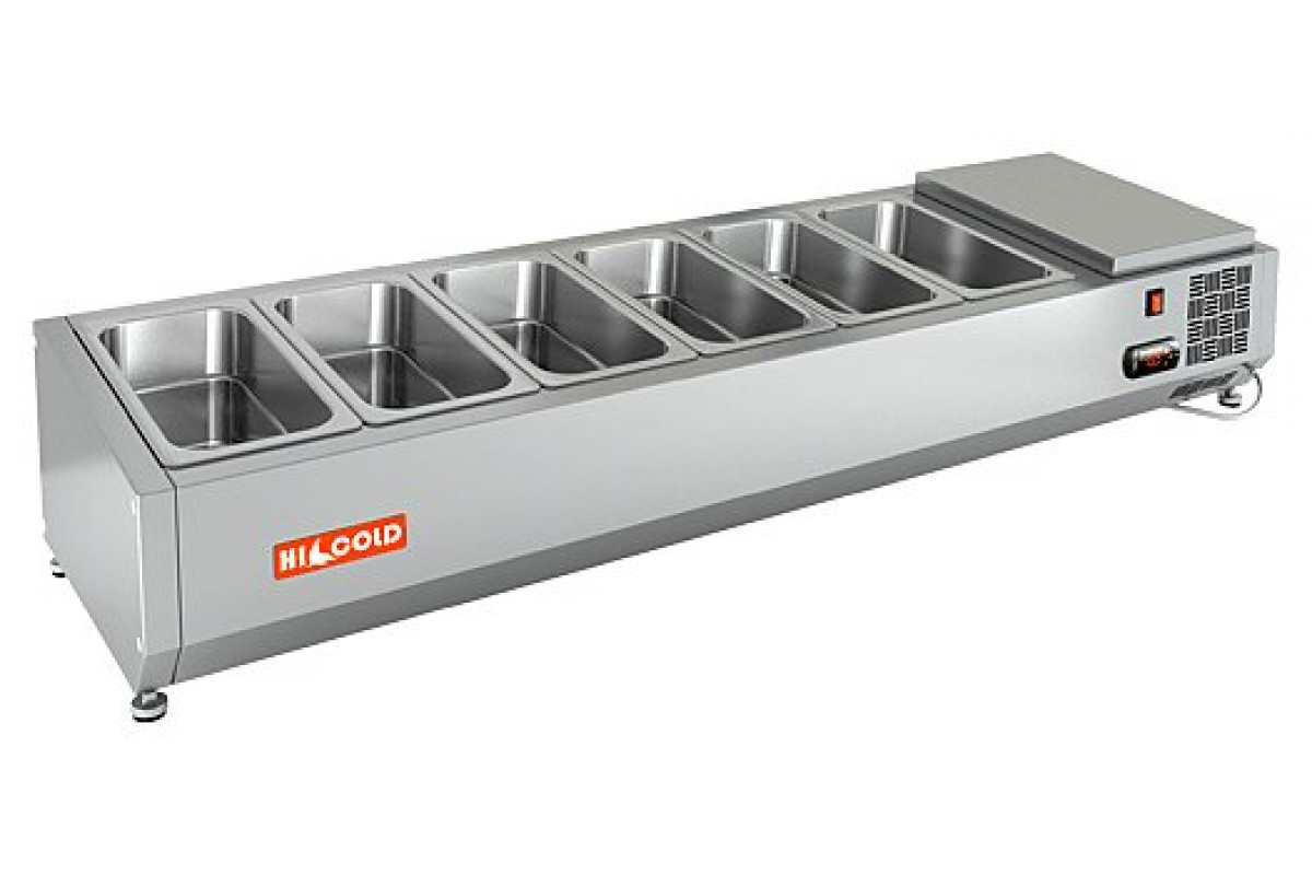 Настольная холодильная витрина HICOLD VRTO 1390 используется на предприятиях общественного питания и торговли для демонстрации, охлаждения и кратковременного хранения салатов, гарниров, закусок и других готовых блюд.