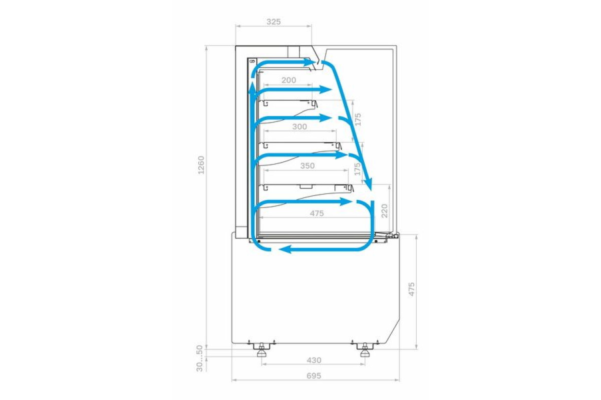 Витрина кондитерская Carboma KC70 VM 0,9-2 STANDARD открытая, горка прямая боковина (версия 2.0) (9005) предназначена для охлаждения, кратковременного хранения и демонстрации разнообразных десертов, напитков, кондитерских и хлебобулочных изделий. Динамическая система охлаждения обеспечивает эффективное и равномерное распределение температуры по всему внутреннему объёму. Рекомендуется к применению в кондитерских, кафе, барах, ресторанах и на других предприятиях торговли и общественного питания.