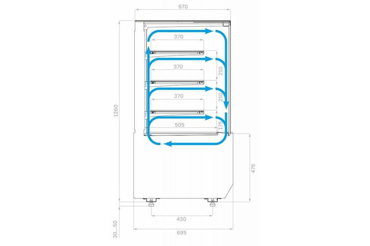 - Высота выкладки продуктов: не более 150 мм;