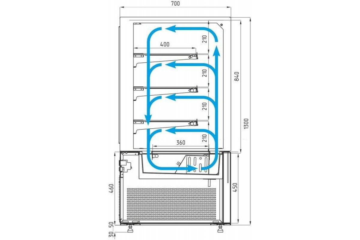 - глубина выкладки – 50,5 см + 3 полки 35 см, 30 см, 25 см;
