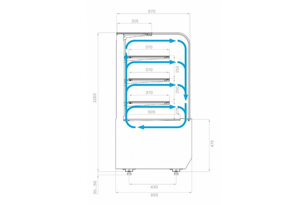 - Высота выкладки продуктов для демонстрации должна быть не более 150 мм;