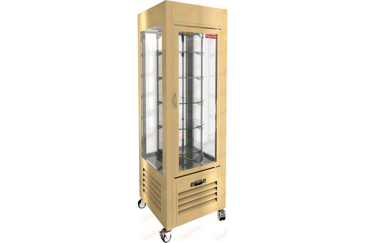Кондитерская витрина HICOLD VRC 350 R Beige используется на предприятиях общественного питания и торговли для демонстрации, охлаждения и кратковременного хранения кондитерских изделий и десертов. Модель оснащена 5 вращающимися полками и колесами со сто