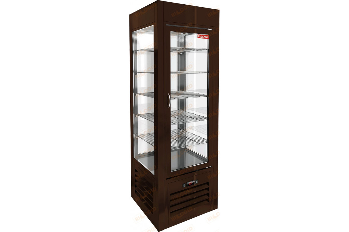 Кондитерская витрина HICOLD VRC 350 Sh Brown используется на предприятиях общественного питания и торговли для демонстрации, охлаждения и кратковременного хранения кондитерских изделий и десертов. Модель оснащена 5 полками и регулируемыми по высоте нож