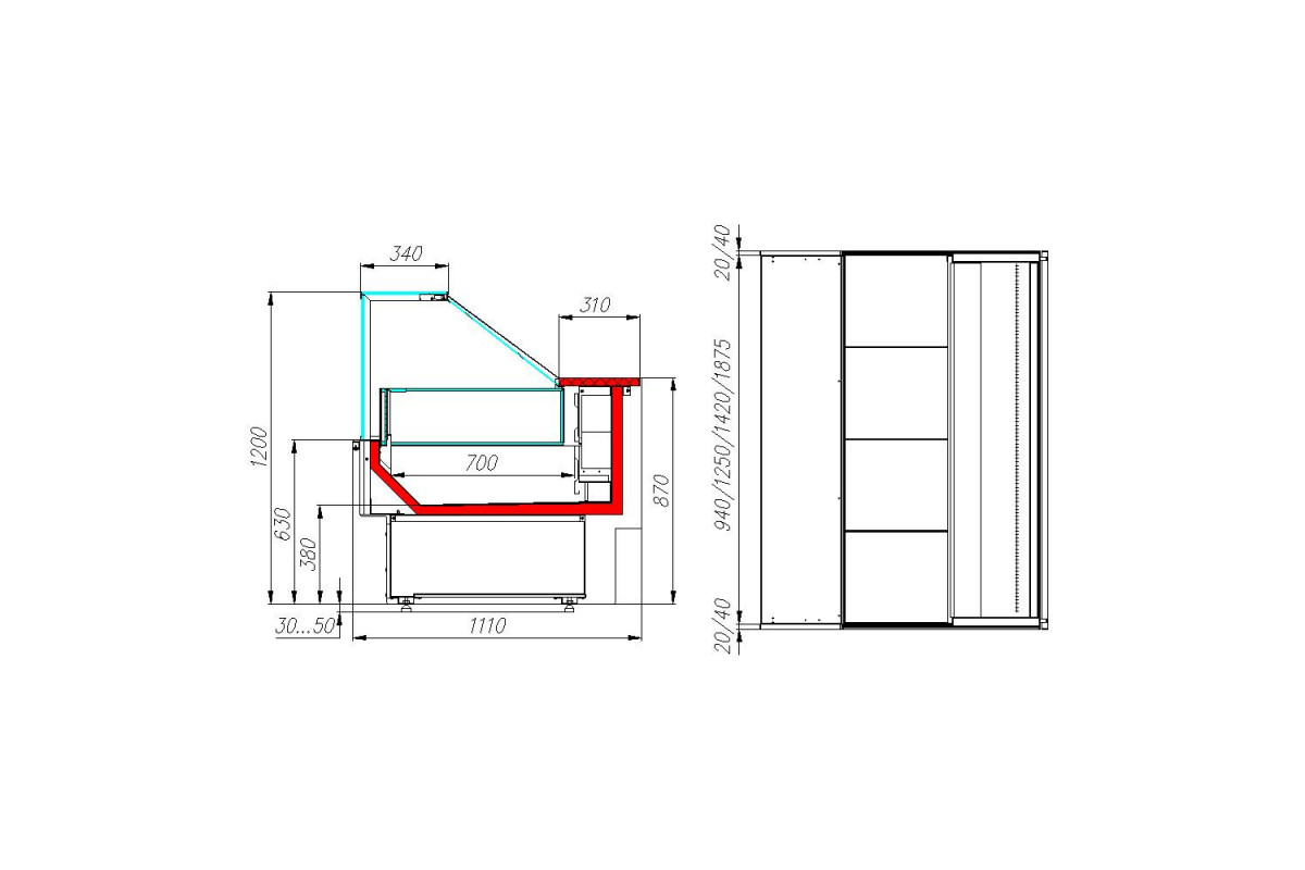 - витрина предназначена для эксплуатации в закрытом помещении с естественной вентиляцией при температуре окружающей среды от +12 до +25 и относительной влажности не более 60%.
