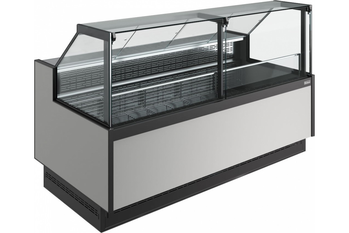 - Экспозиционная поверхность и столешница изготовлены из шлифованной нержавеющей стали;