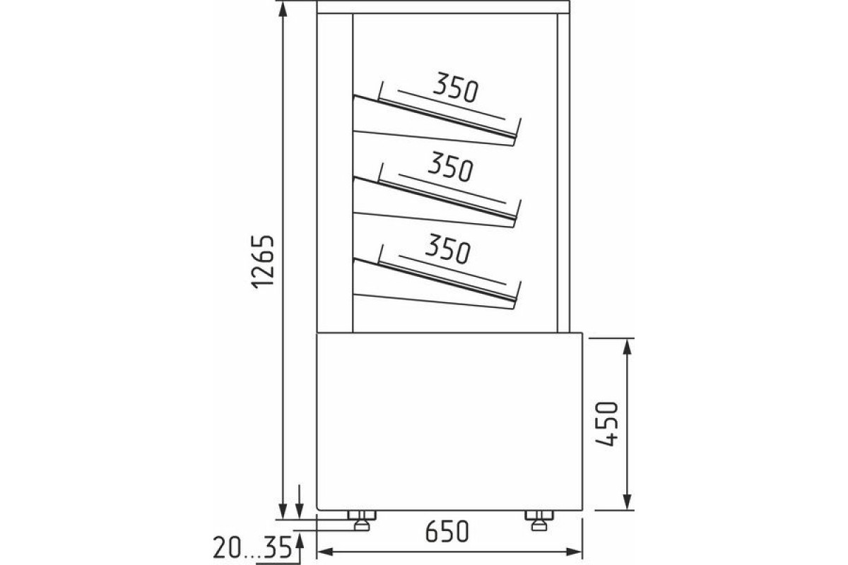 - Глубина выкладки полок 350 мм.