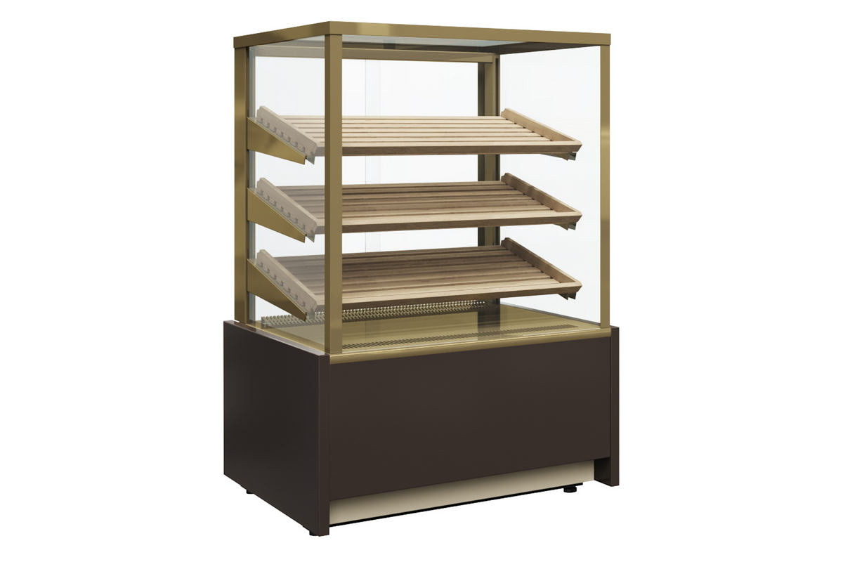Витрина нейтральная напольная Carboma KC70 N 0,6-1 LIGHT Bread 9006-9005 (со стеклом) современное оформление торговых пространств. Кубический дизайн, подсветка каждой полки, многообразие цветовой палитры сделают интерьер привлекательным. Подходит для демонстрации пирожных, выпечки, пиццы, хлеба. Благодаря наличию в витрине защитных металлических стоек, закрывающих соединение стекол, рекомендуется устанавливать в зонах высокой проходимости покупателей и риском повреждения витрины сумками и чемоданами.