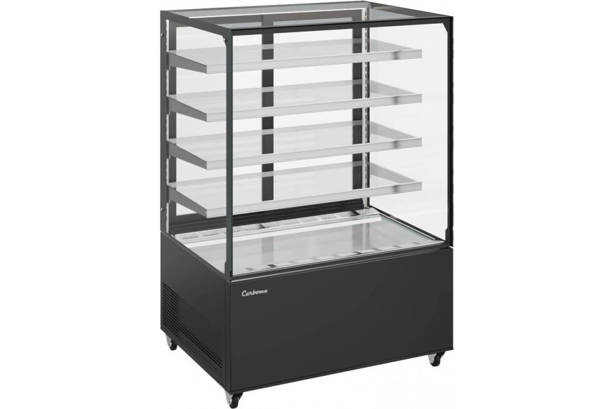 Витрина нейтральная напольная Carboma KC71-150 N 1,2-1 (9005) витрины COSMO идеально подходят для любой конфигурации помещений кондитерской, пекарни, кафе. Дают возможность легко менять и расширять концепцию, варьируя пространством и объёмом экспозиции продуктов. Ровные грани стеклопакетов и отсутствие соединительных планок во внешнем контуре остекления придают витринам легкость и эффект бесконечности.