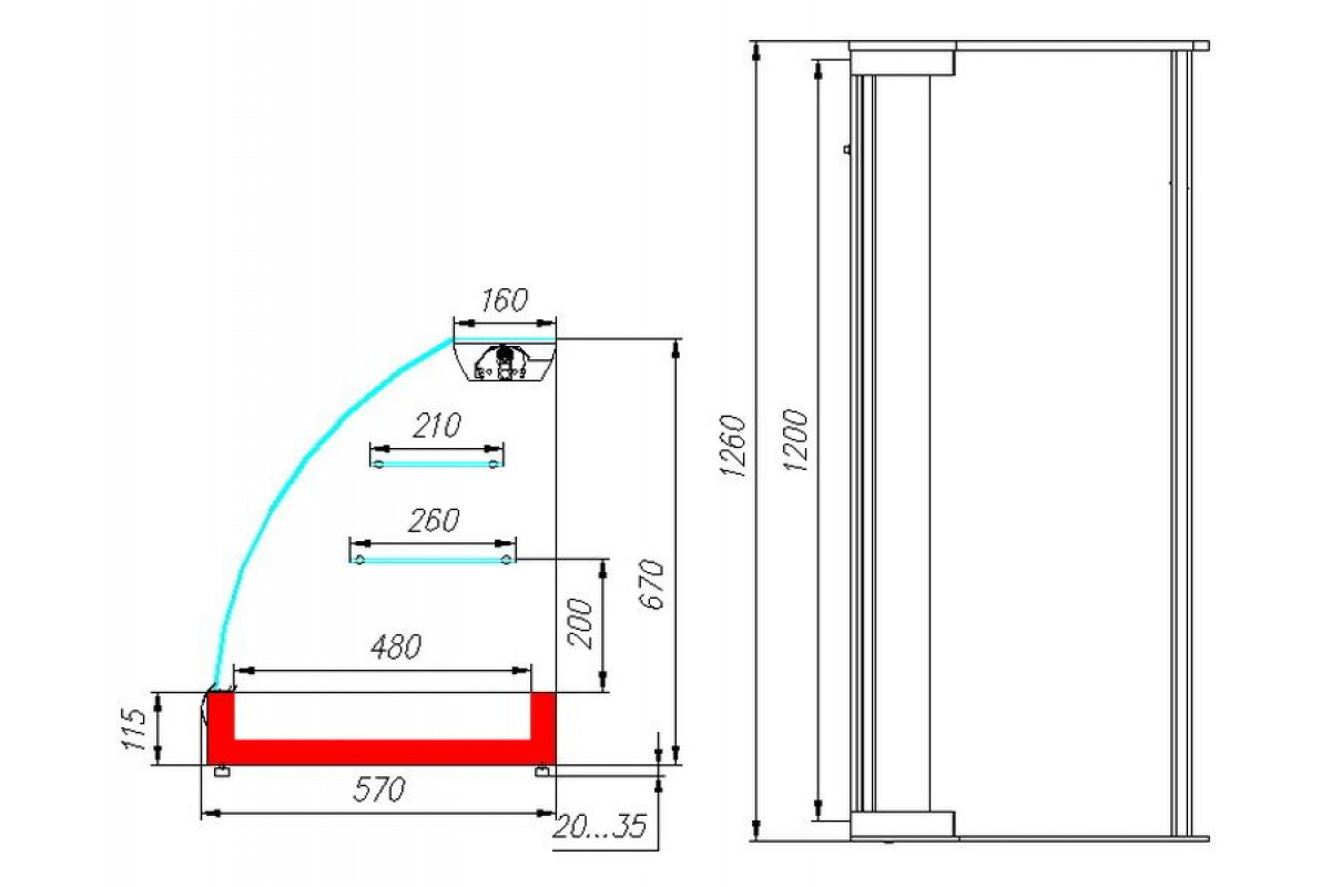 - Глубина выкладки 480 мм + 2 полки 260 мм и 210 мм;