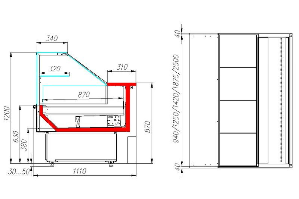 - Глубина выкладки 870 мм, глубина полки 320 мм;