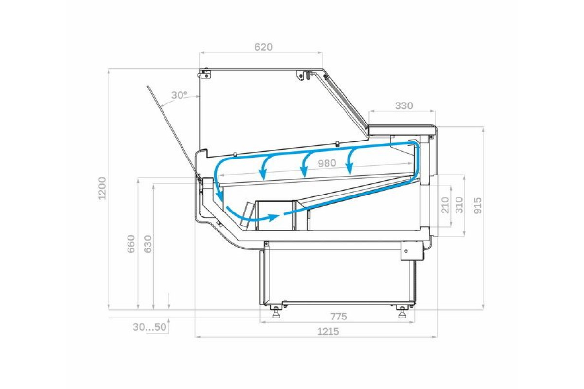 - Экспозиционная поверхность, столешница из шлифованной нержавеющей стали. Базовые поддоны из нержавеющей стали;