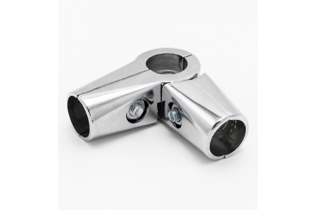 Зажим поворотный усиленный для труб в 4-х направлениях d=25мм, хром. состоит из двух частей, тем самым упрощая процесс сборки конструкций с его использованием. Данный крепёж соединяет 3 трубы: одна из труб по центру проходит насквозь и 2 другие перпенд
